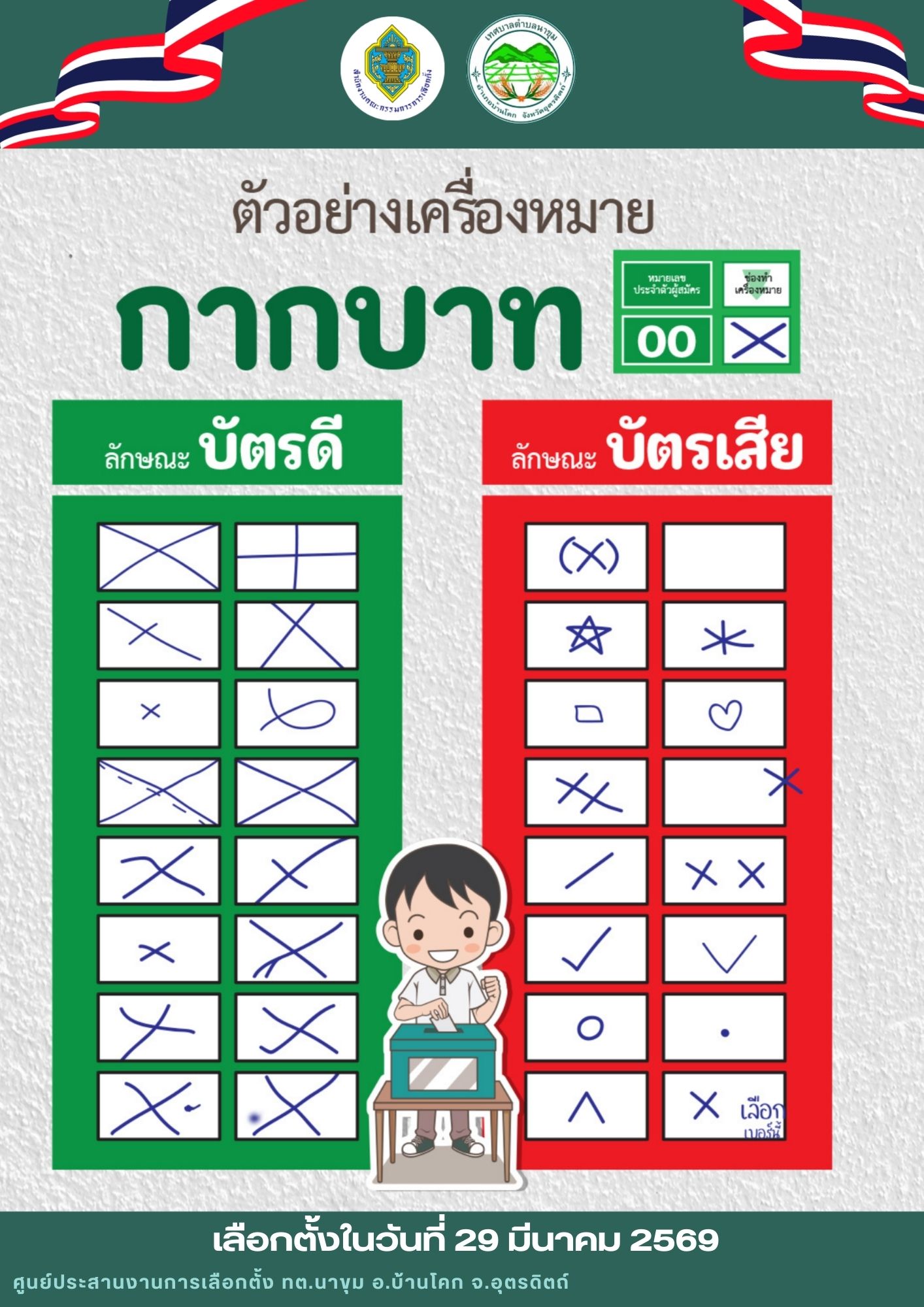 ตัวอย่างบัตรดี บัตรเสีย (10 มี.ค. 2569)